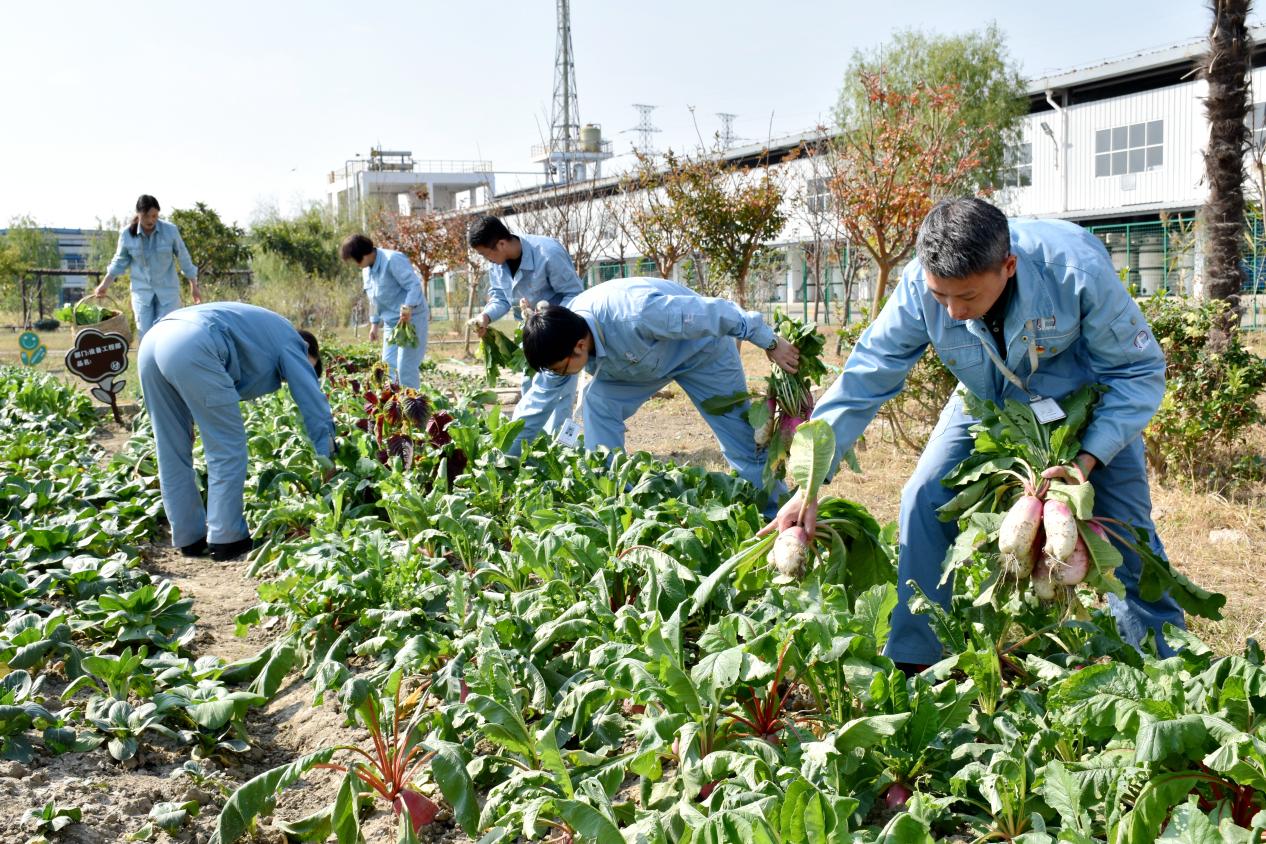 自2017年,公司劃分給每個部門一塊責任田,一到休息時間,大家就分頭忙乎開了,根據喜好種植了各類蔬菜。除了責任田里的蔬菜,還有員工認養的櫻桃、枇杷、葡萄等果樹。旁邊的雅致湖里,鴨鵝戲水,草地上,山羊低頭吃著青青草,好一派田園風光。