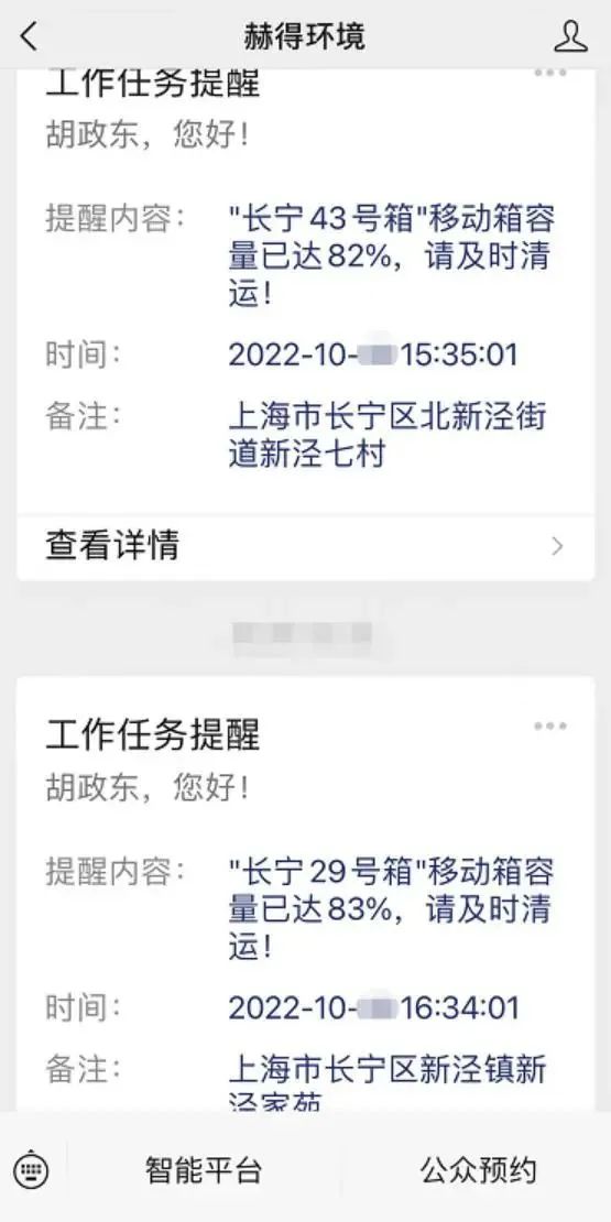 “綠房子”內設有的12個超聲波感應探頭,可實時監測箱內垃圾量,并通過手機APP和電腦自動推送調度,后臺系統對分配作業任務全過程監管,同時可自動產生收運記錄報表,實時掌握收運情況。