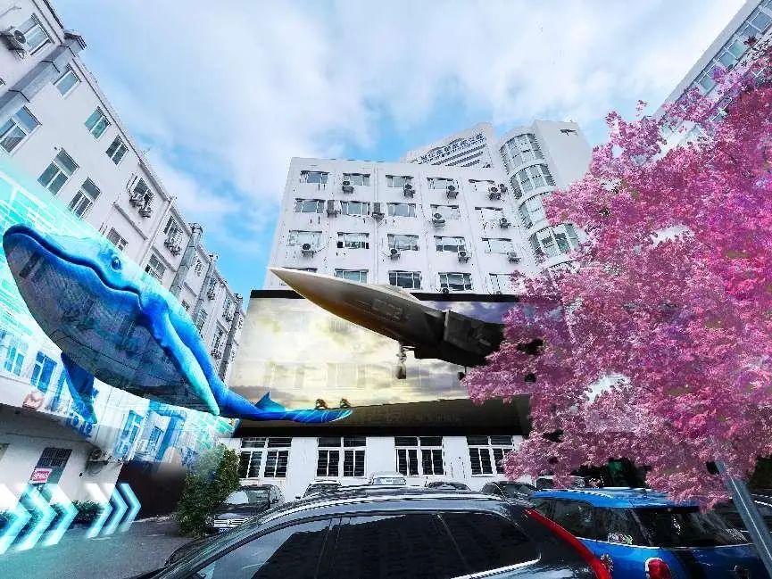 物理空間一旦改造、裝修完畢便難以變動,但在德必園區虛擬疊加的現實空間中,可以讓用戶變更除了工作內容以外的幾乎所有設定,例如打造一個能讓客戶集中注意力的全新展示空間。如今,進入柏航德必易園,用戶通過手機或者VR眼鏡,一眼就能看到園區入駐企業——福煦影視所制作的動畫番劇《重器2069》宣傳片,而園區易園風格的白墻正好成為了企業展示的天然的“幕布”。