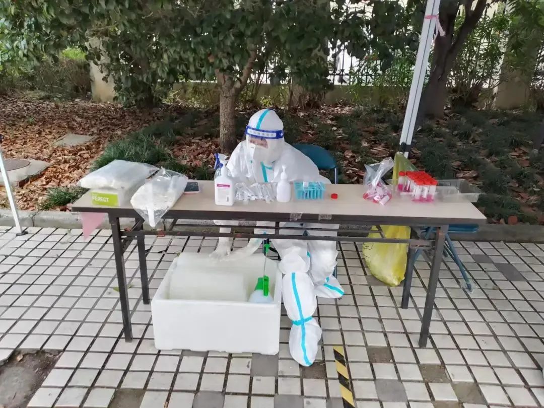 自開展全員核酸采樣以來,弘澤陽光園小區的采樣點安置在小區車棚和25號樓之間,雨天靠車棚遮風擋雨,夏天靠樓道邊的樹蔭遮陽。