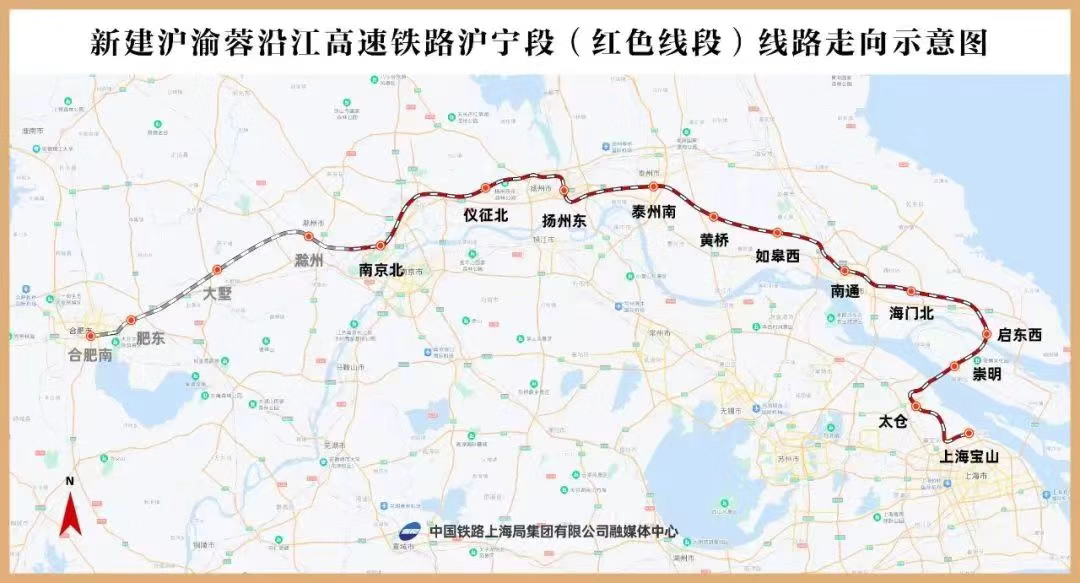 上海段項目于11月1日開工,總投資329.9億元。上海至南京至合肥高速鐵路是國家中長期鐵路網規劃“八縱八橫”中沿江通道的重要組成部分,是江北沿江城市與南京都市圈、上海都市圈快速直達的快捷通道。上海市境內正線長度51公里,設上海寶山站、崇明站2座。項目建成后,對于優化沿長江地區鐵路網布局、服務長江經濟帶協同發展,推動長三角高質量一體化發展等具有重要意義。