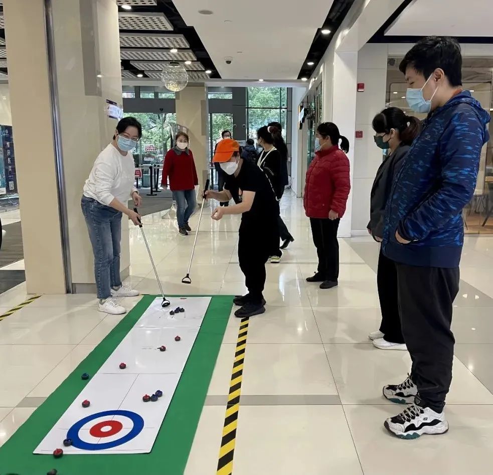 為了豐富轄區內白領們的業余時間,讓他們能夠在繁忙的工作間隙放慢腳步,享受生活的樂趣,11月17日,仙霞新村街道特地為白領們定制了一場“午間一小時”的活動——在繽谷廣場黨群服務站舉辦了一場“陸地冰壺”挑戰賽,讓他們沉浸式地感受冰雪運動的魅力。