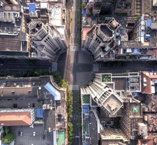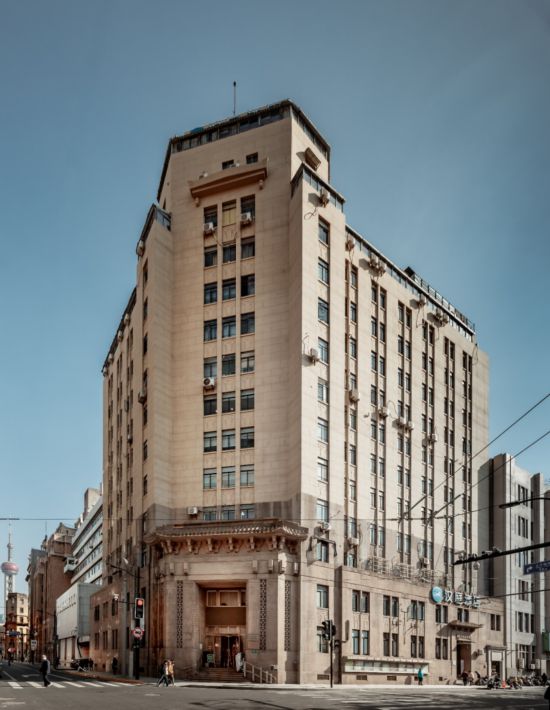 聚興誠銀行大廈位于江西中路246號-250號,始建于1935年,1940年落成。建筑底層入口用飛檐門罩、斗栱等中國傳統建筑構件,簡潔的立面豎向線條感強,呈現現代建筑結合中國新古典主義裝飾風格。1983年在原有基礎上進行后續加建,陸續加建至12層,局部14層,1988年建設完成。