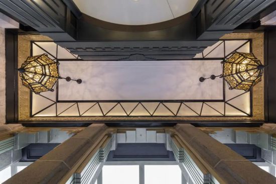 都城飯店于1934年建成,鋼框架結構體系。大樓八層以上臺階式退臺形成高聳感,底層沿街外墻采用花崗石飾面,主入口及建筑頂層、塔樓檐部等處有典型的裝飾藝術圖案,是帶有裝飾藝術元素的早期現代建筑風格高層旅館建筑。大樓墻體采用了當時國內領先的“汽泥磚”,不僅具有輕質的優點,其微小氣孔構造又提升了墻體的保溫隔聲性能。