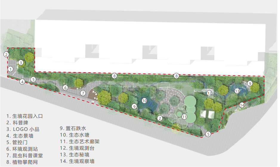 經過對本地動植物進行調研,整合生境定向需求,最終確定水韻生境花園以“小水洼生境”為特色,將打造成“消失的秘境花園”,為動物提供一個環境適宜、生態穩定的棲息地。