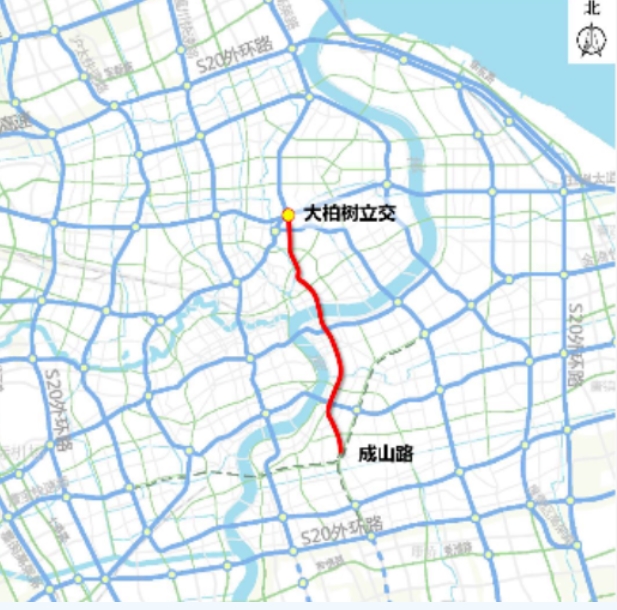公示內容顯示,本次規劃范圍北起大柏樹立交(中環路/逸仙高架路立交),南至楊高南路成山路,全長約14.3公里。根據新一輪城市總體規劃,南北通道作為中心城路網中的南北向骨干通道,將進一步增強南北向道路容量,緩解南北向交通擁堵,加強對沿線重點地區的服務。