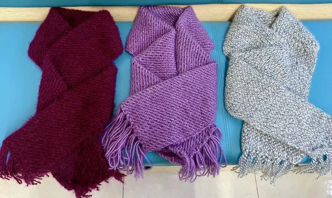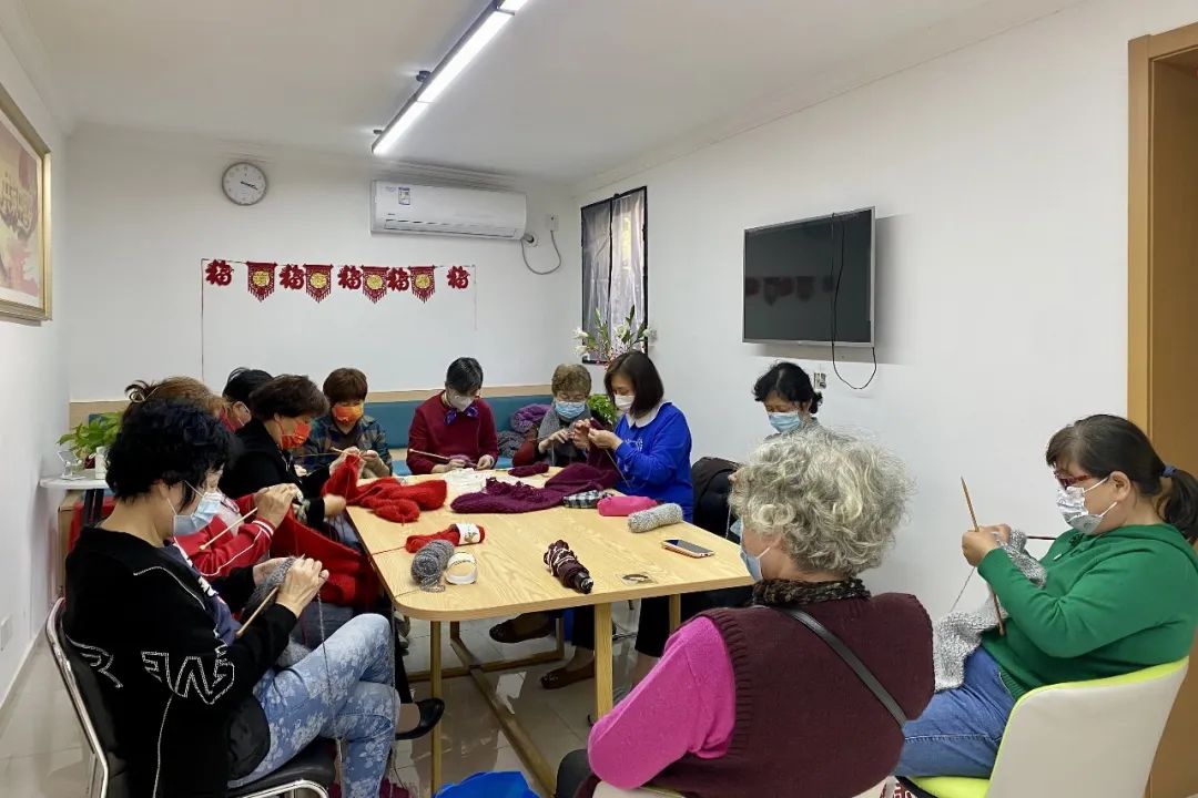 來到西鎮居民區的婦女微家,幾位阿姨們正專心致志地編織著,期間大家還時不時彼此商量一下編織針腳、款式。今天阿姨們織的是圍巾,從吃過早飯后,她們就幾乎一刻不停地織了起來。