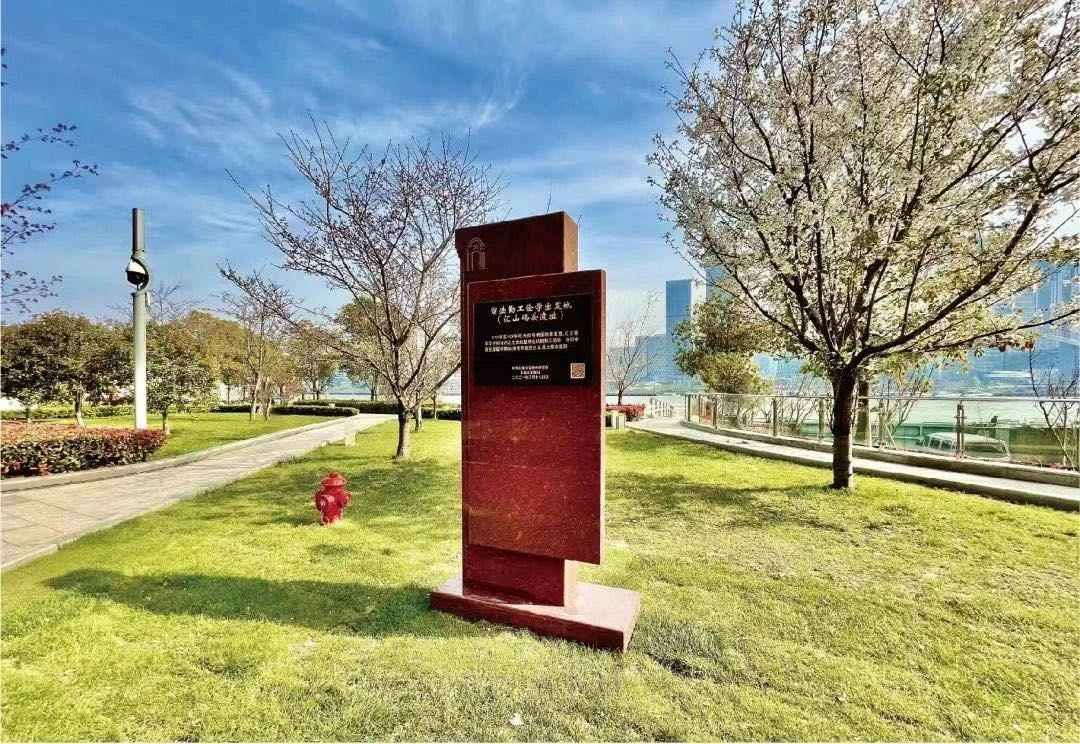 從靠近北外灘公平路碼頭的濱江最佳觀景點一眼望去,江面上有一個紅色的浮筒。這是中國第一批留法勤工儉學學生出發時,“因幡丸”郵輪停泊的七號浮筒。它見證了一個世紀前的啟航。