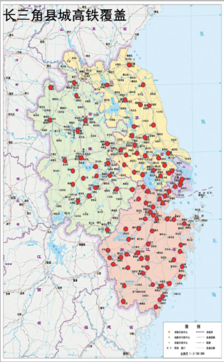 長三角縣城高鐵覆蓋點。數據來源:中國鐵路12306