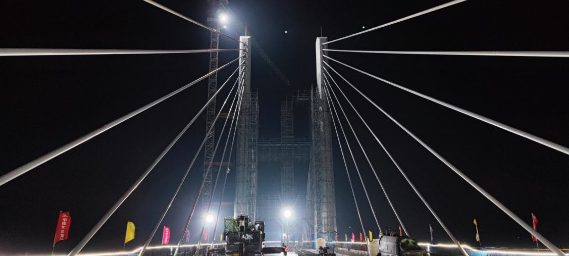 杭衢鐵路常山江特大橋矮塔斜拉橋主橋合龍現場。段鋼明 攝