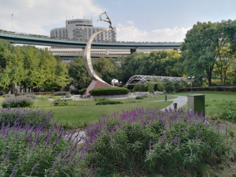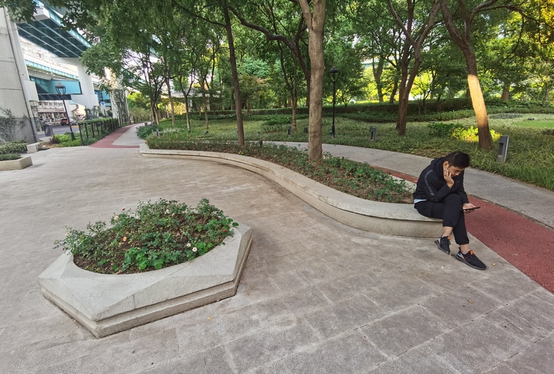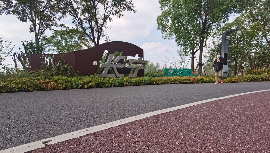 向北偏西移動約5公里,習慣到延天綠地鍛煉身體的老楊夫婦也有驚喜:環繞綠地的老步道翻新了,磚紅色的慢行道和淡灰色的跑步道將綠地和靠近馬路的人行道銜接起來,沿途的下沉式廣場、飛天雕塑、陽光草坪、月季花園等美景讓他們目不暇接。