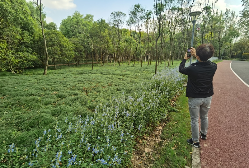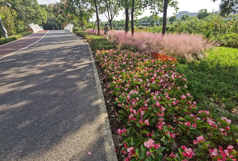 在建設過程中,長寧區外環林帶生態綠道還最大限度地保持了自然基底,減少對現狀苗木和地形的破壞,并在此基礎上追求“彩化”,栽植約150種新優植物,讓沿線四季有景:春季主打粉白色系;夏季主打藍紫色系;秋季各種落葉喬木“發力”,色彩斑斕;冬季有梅花在寒風中綻放驚喜。