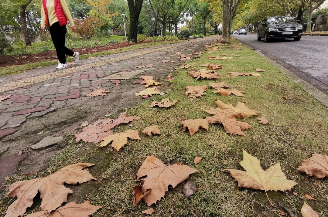 金山區市容環衛所環衛科科長:黃展懸鈴木樹葉比較大,落在地上也不會堵塞下水井?!奥淙~不掃”并不是說我們不打掃這條路,如果路上有垃圾,我們也會及時清理。