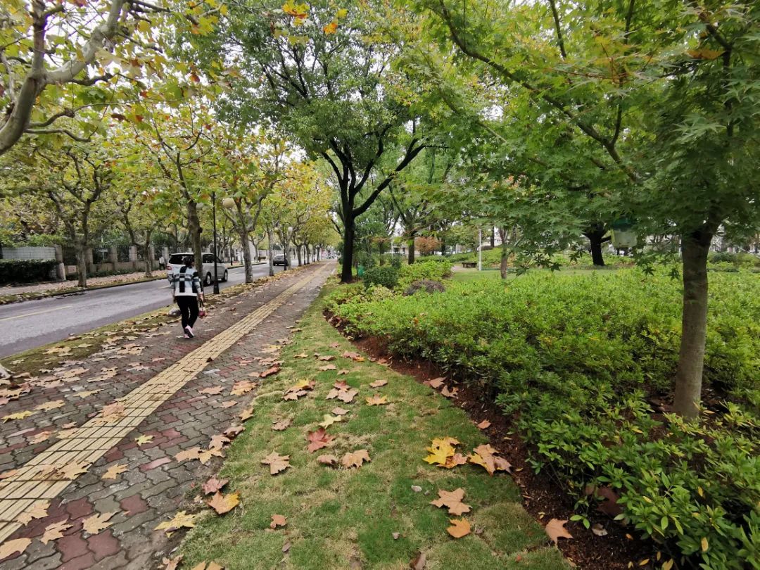 漫步于金一東路,大片的落葉簌簌而下 ,在人行道上鋪散開來,踩在腳底沙沙作響。焦黃的落葉映襯著紅綠色地磚,構成了一幅懷舊浪漫的風景畫,氛圍感油然而生,也吸引了不少市民駐足。
