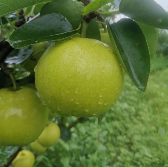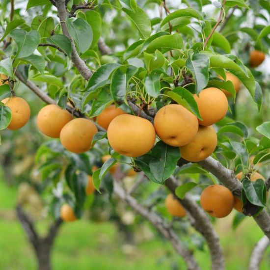 倉橋水晶梨的主產區——松江區永豐街道(原倉橋鎮)屬于長江三角洲沖積而成的湖沼平原,該地區土壤為由湖河沉積而成的青紫泥,有利于有機物質積累,潛在養分含量豐富,這奠定了倉橋水晶梨內在物質基礎。倉橋水晶梨果型端正,呈圓形或扁圓形;果皮呈金黃色或黃綠色,果面光澤,果點均勻,果肉晶瑩剔透,汁液飽滿,果香清甜。