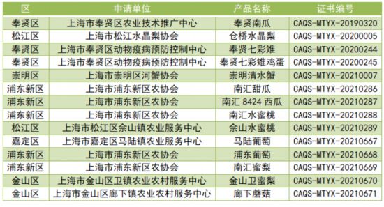 上海市全國名特優新農產品名錄產品