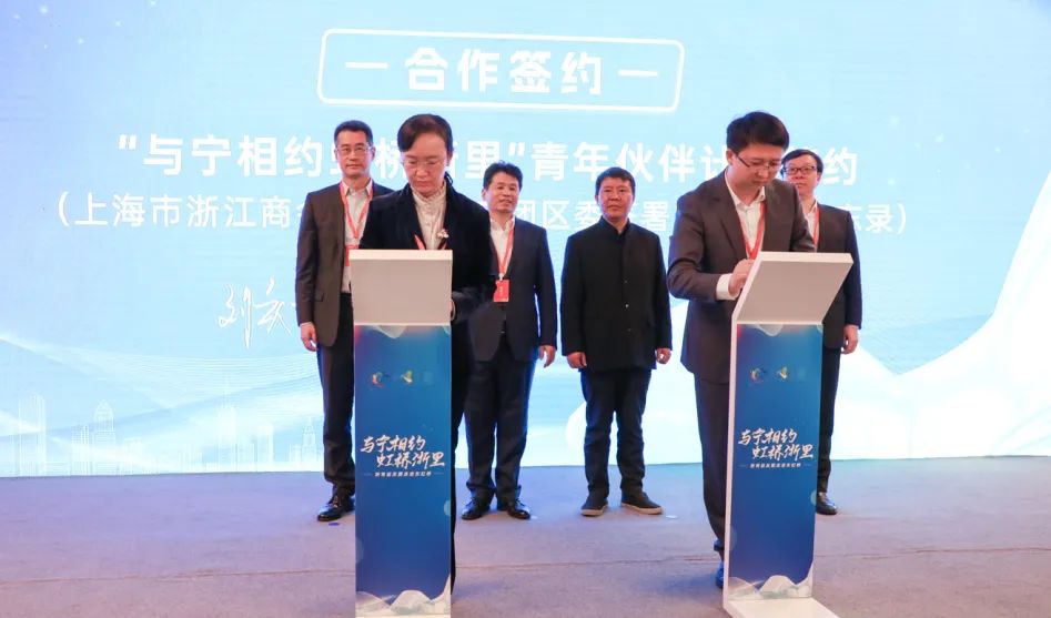 上海市浙江商會青企協與東虹辦簽署商務合作伙伴備忘錄,上海市浙江商會團委與長寧團區委簽署團建聯建備忘錄。上海市浙江商會企業家代表以及農業銀行相關負責人分別進行了交流發言。