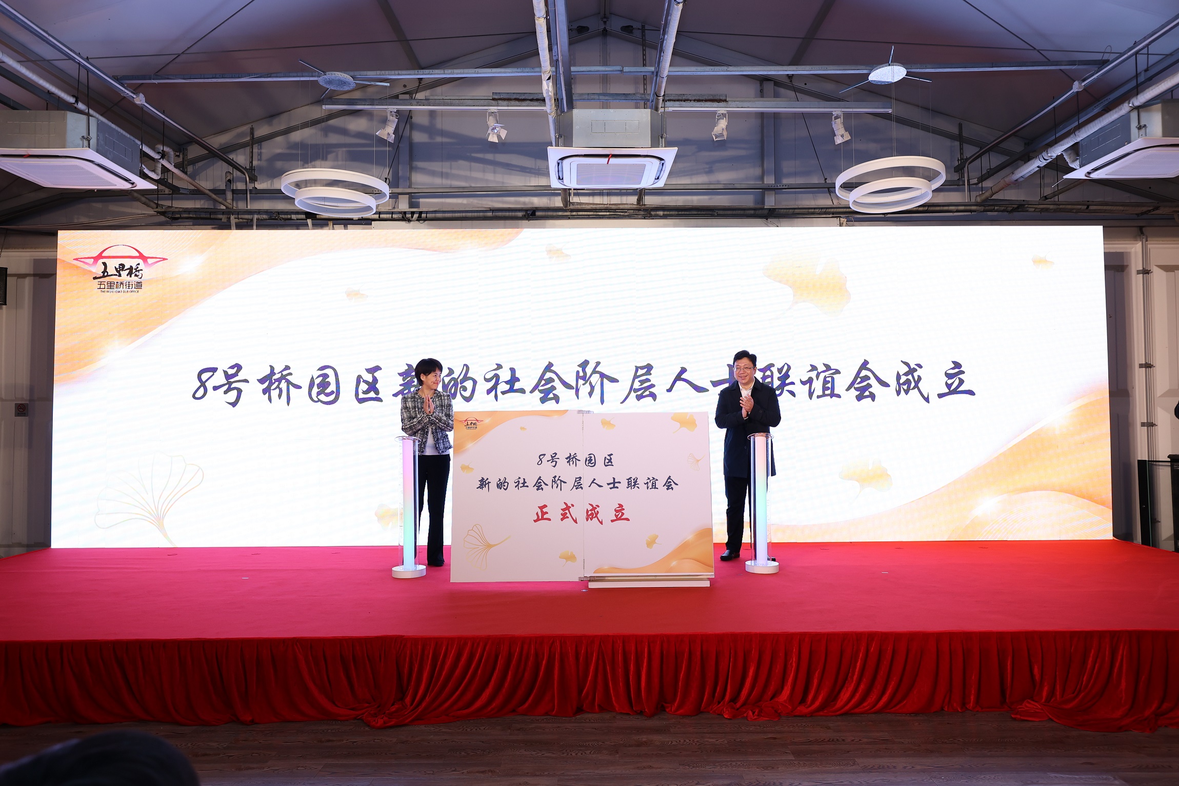 五里橋街道有著濃厚的歷史文化底蘊,是中國民族工業的發祥地,凝聚著新中國奮斗創新的工業精神和“首發首創”的科技基因。隨著城市經濟結構不斷轉型升級,這里的工業資源經過華麗蝶變,成為文創產業集聚地,匯聚了一大批活躍在文創、科創、設計、藝術、教育、休閑等各個領域的新的社會階層人士,為進一步廣泛聯系、團結和引領轄區新的社會階層人士,在推進五里橋街道經濟社會發展中凝聚共識、匯聚智慧、貢獻力量,開幕式上,8號橋園區新的社會階層聯誼會宣告成立,成為黃浦區成立的第一家樓宇、園區新聯會。