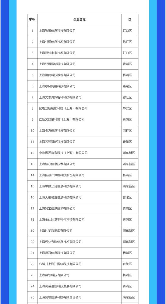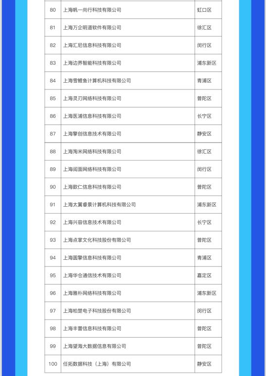 該名單自2018年始每年發布,在推動本市軟件和信息技術服務業高質量發展方面發揮了重要示范帶動作用,取得了廣泛社會影響,是評價上海軟信企業發展質量的重要指標參考。