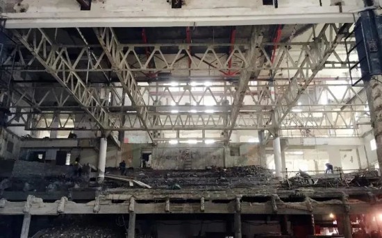 修繕保留建筑物外墻體及嵌墻柱,保存一層門廳原始結構,建筑內部其他非原始結構(柱、梁、板)拆除,新做鋼筋混凝土主體結構。同時為了滿足現有舞臺的功能需求、設備間及舞臺樂池升降的空間需要,將原有地下室加大、加深。