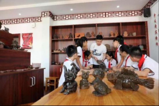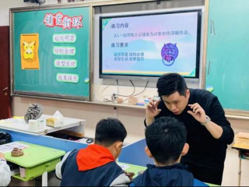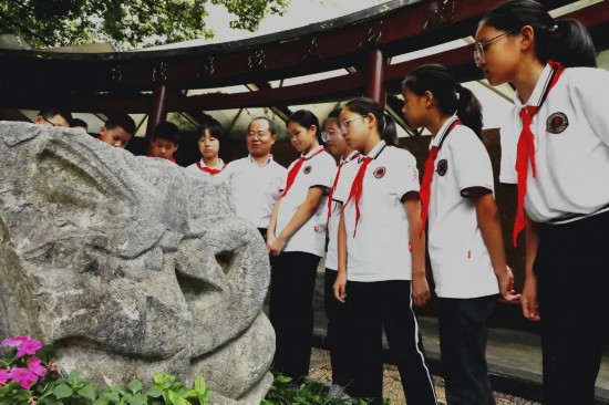 歷史老師袁宗勇執教校本課程《走進世界遺產》,帶領學生了解學校龍紋石雕