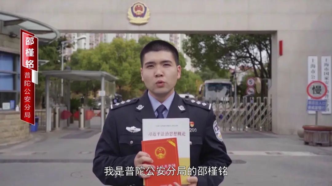 普陀區公安分局邵槿銘說,憲法是我國的根本大法,學習貫徹習近平法治思想,樹立忠于憲法、維護憲法、遵守憲法的自覺意識。
