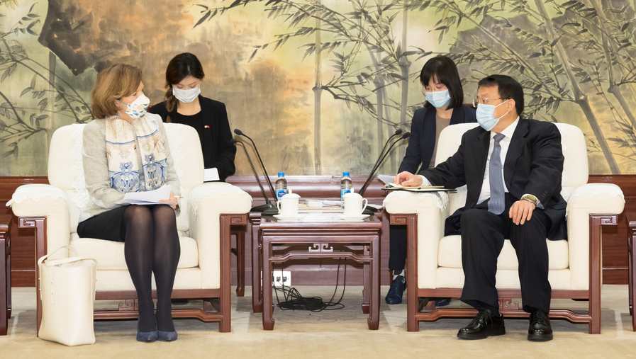 上海市市長龔正12月2日會見了英國駐華大使吳若蘭一行。