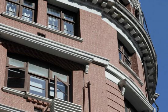 身處外灘一帶,安利大樓并不起眼,然而當年它卻是上海最早的現澆鋼筋混凝土結構大樓之一。大樓為簡化的新古典主義風格,四川中路、九江路口轉角處為主入口,層間有白色水泥腰線,頂部出檐,部分窗有弧形磚過拱或半圓券,形成構圖中心,整個立面精美。