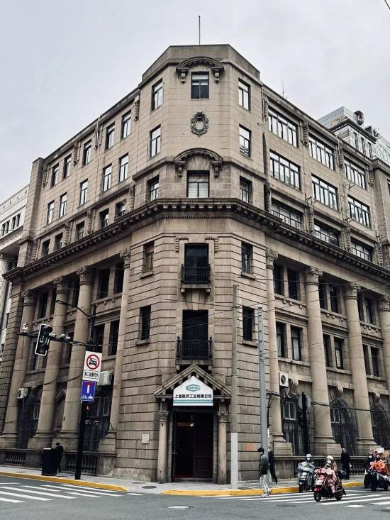 江川大樓,1916年竣工。建筑立面為花崗巖飾面,入口處飾巴洛克山花,采用貫通三層的科林斯柱式。