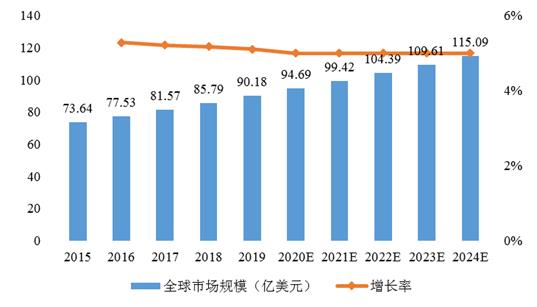 2015-2024 年全球吻合器市場規模
