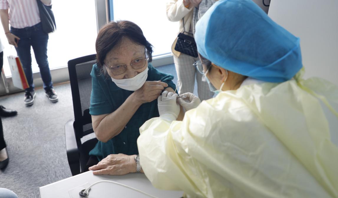 89歲的病毒學家聞玉梅院士在接種新冠疫苗。張沛驊攝