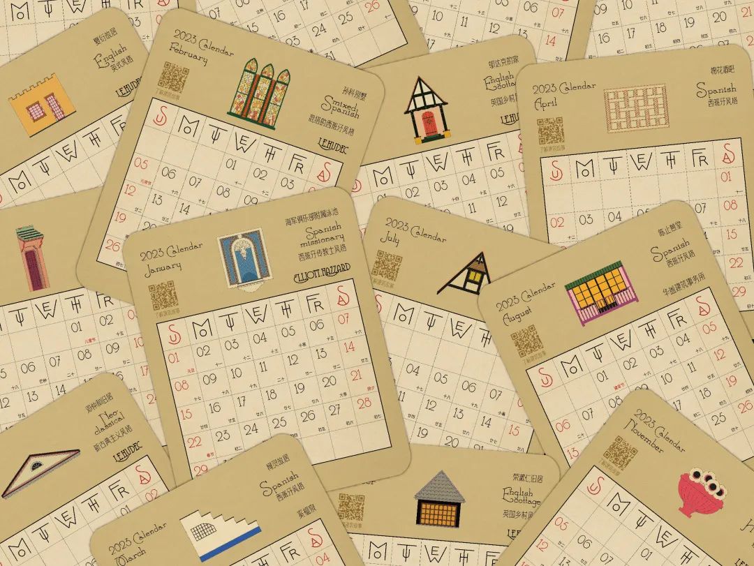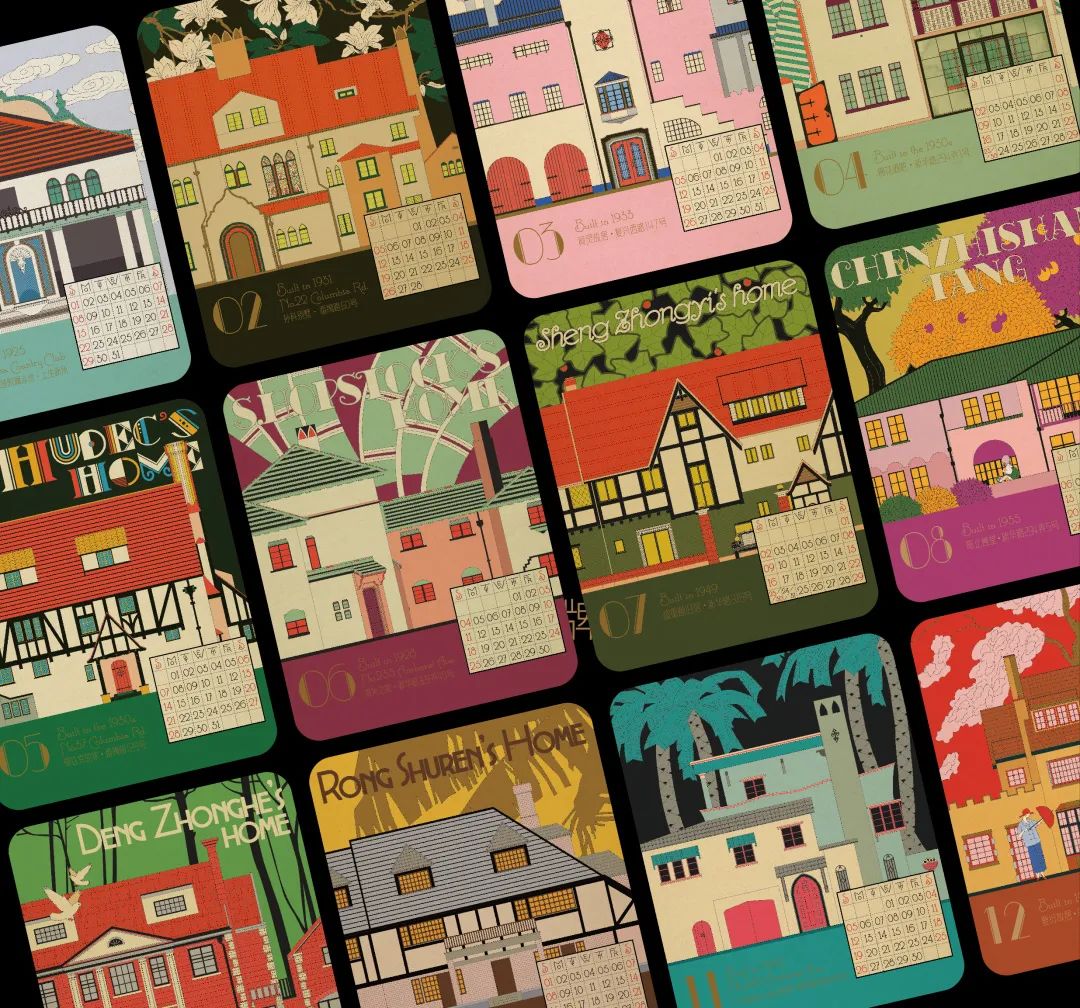 在畫面色彩與風格上,團隊以19世紀初的裝飾藝術為靈感來源,更加貼合月份牌這個產物的時代感。每張月份牌的卡片設計和工藝更為精巧,背面延續了往年的二維碼導覽設計,用手機掃描二維碼即可了解老建筑背后的故事。