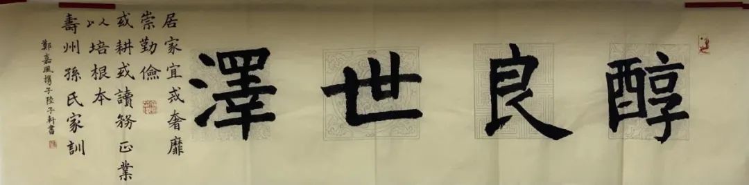 或樸實無華兼納乾坤,或筆走龍蛇行云流水,或揮毫潑墨氣勢磅礴……展廳內,一幅幅風格各異的家風家訓家教書法作品被分為“述”中華經典家風故事、“講”優秀家庭先進事跡、“展”家訓家教書法作品三個板塊展示——從“孟母三遷”“祖昌教孫”等經典故事到革命先輩的家風故事,展示了古今名人如何從各方面規范子女,使嚴格家教惠及子孫,讓優良家風世代相傳;到長寧區榮獲“全國最美家庭”“全國五好家庭”的好家風故事,以“小家”的幸福與共展現“大家”的和諧發展。
