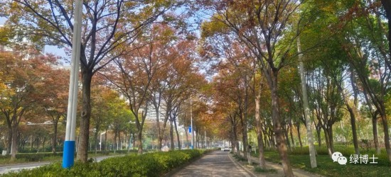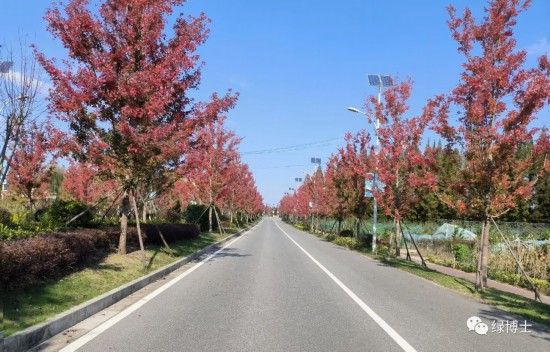 該道路為雙幅路,路段長750米,道路運用色葉喬木銀杏、無患子,搭配開花植物櫻花、美人梅、月季、芒草,營造一季有色,兩季有花的道路景觀。隔離帶成規模種植美人梅、月季,地被選用萱草,形成春季繁花似錦、秋季色彩豐富的特色綠化景觀。