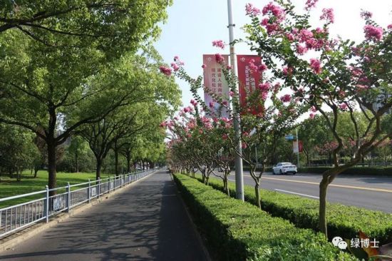 該道路全長約2.8公里,打造紅花槭行道樹特色,胸徑12-14厘米,總計830棵;中分帶內種植茶梅、絢麗海棠、紅花檵木等,兩側綠地種植了毛鵑、茶梅、美人蕉、南天竹等,營造觀花色葉景觀道路。道路兩側建有約6公里的綠道。