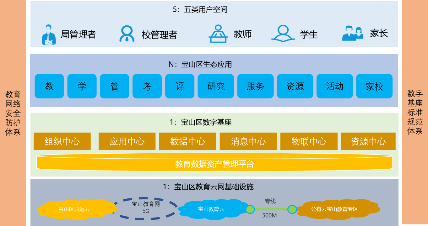 這是寶山區“未來寶”教育數字基座是為教育治理和課堂教學提供的“操作系統”,是基于互聯網、人工智能、大數據、5G、全息技術與數字建模等新一代信息技術為特征,物聯、數聯、智聯三位一體的智慧課堂教學生態系統。