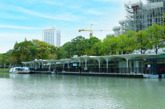在市文旅局、市交通委、市住建委、市水務局等專班成員單位的支持和指導下,已建設完成并投入運營的碼頭有四處,分別是外灘源碼頭、四行倉庫碼頭、昌化路碼頭、長風公園碼頭。