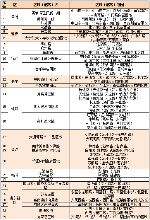 2022年上海市高標準保潔區域(道路)名單公示