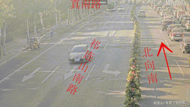 真南路/祁連山路位于上海市普陀區,沿線有辦公、學校等,早高峰期間通勤壓力大。市公安局交警總隊在現行信號配時方案中增加早高峰期間北向南單放相位,緩解擁堵現象。詳見↓