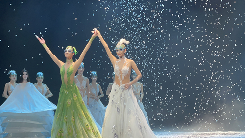 “新版舞劇提升了很多舞臺裝置,更符合現在觀眾的審美。相比較于2013年的版本,這次的群舞得到了加強,我最覺得不同的是,2013年由我飾演全版,今年有年輕的舞者能在舞臺上綻放?!贝舜窝惭葜?,楊麗萍大膽啟動了一對舞蹈新秀—中央民族歌舞團演員肖蓉浩、中國東方演藝集團楊涵擔綱男女“孔雀”,并親自參演第四幕“冬”之篇章。