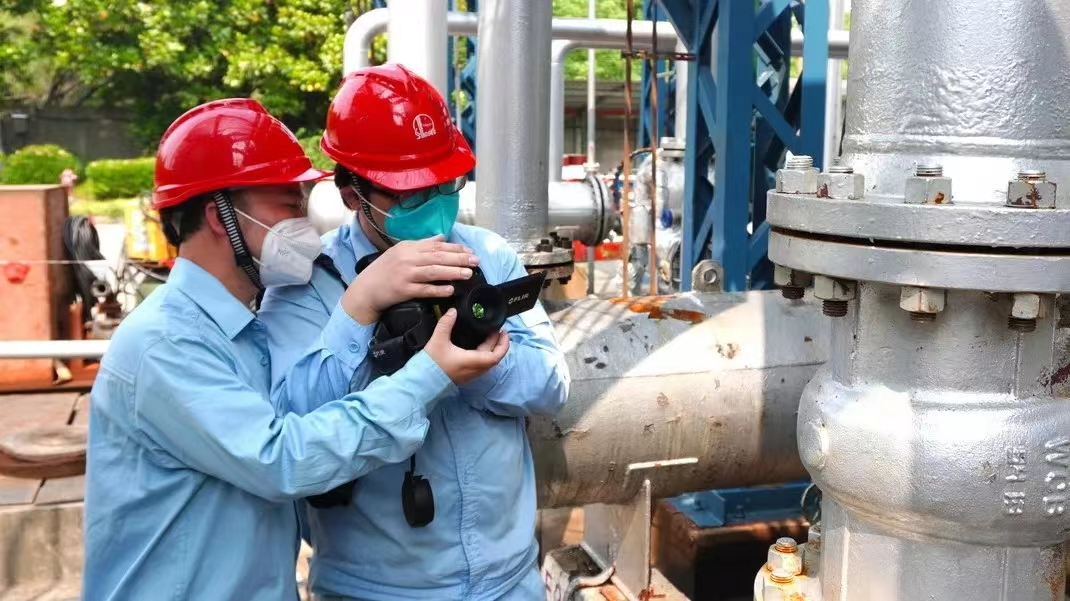 “有了這個神器,我們就能看見很微小的泄漏?!备邩蚴療捰腿堪踩偙O高明在裝置用VOCs(揮發性有機物)紅外成像設備開展異味溯源排查。而在以前,一些很微小的泄漏很難被發現,經常聞到異味,卻找不到源頭,有了成像設備就能看到微乎其微的泄漏點,還解決了常規手持VOCs檢測儀對高處設備泄漏點無法實現檢測的問題,高明對這臺小巧又便攜的成像設備贊賞有加。