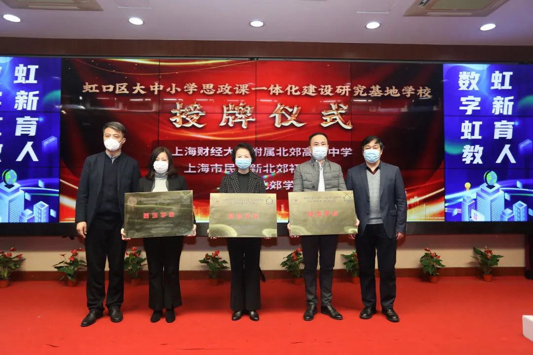 12月9日的閉幕式活動中,“大中小學思政課一體化建設”展示課之后,北郊教育集團的三所學校,即上財附屬北郊高級中學、民辦新北郊初級中學和北郊學校作為新一批虹口區“大中小學思政課一體化建設”研究基地學校,接受了授牌。