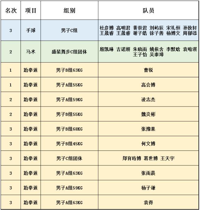 跆拳道比賽中,寶山共獲得2個第一、2個第二、6個第三,共計1金1銀3銅。