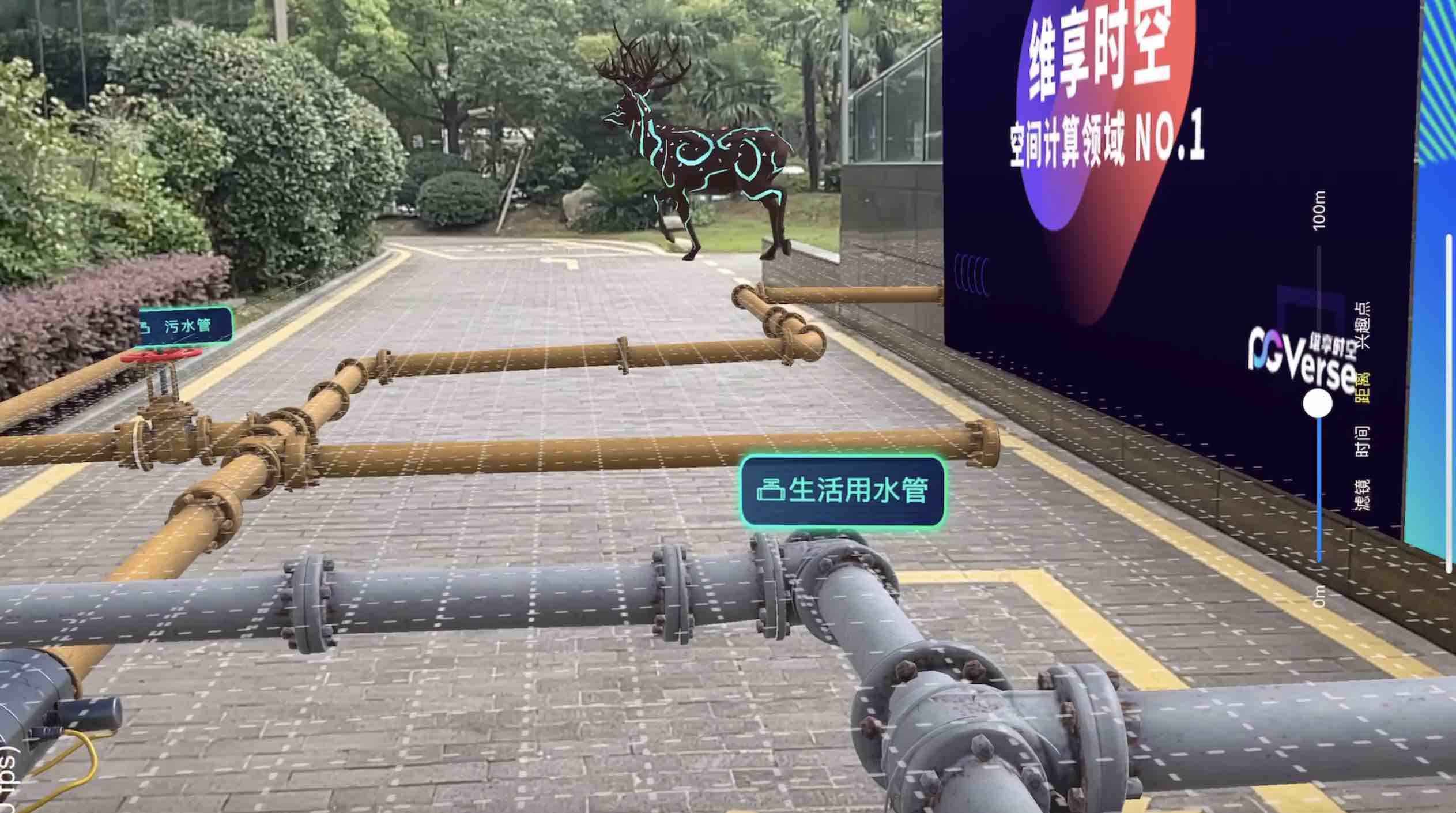 將鏡頭再次對準地面,一根根地下管道清晰展現在眼前,供市政管理和維修人員點擊查詢它們的維修信息,除此之外,城市管理者還可以用手機輕松查詢路邊變電站情況、地下井蓋維護和周邊綠化管理等。劉泉結合上述應用介紹了背后的技術邏輯:“首先用戶舉起電子設備后,我們需要對用戶的位置有一個精確的定位,而且不僅得知道他在哪,還得知道他朝向的角度,他正在觀看的畫面,這個就涉及到高精尖定位的技術基礎。接下來我們需要關注的是鏡頭瞄準的實體到底是什么,比如識別到一根編號為000835的地下管道,通過提前收集存儲好的各類數據資源,我們能夠對應地快速檢索出其長度、直徑、屬性等等,并以一個比較好的視覺效果呈現在VR眼鏡等載體上?!?/p>