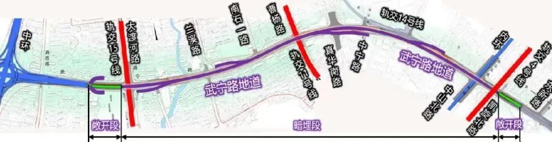 武寧路地道進出匝道分布