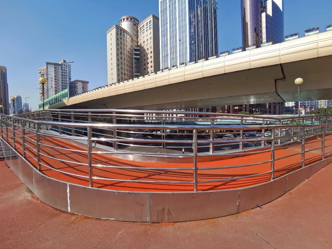 值得一提的是,在江蘇路人行天橋加裝電梯的同時,施工單位還在橋面打造了無障礙坡道,并配合增設符合高度的扶手欄桿,讓乘坐輪椅和推嬰兒車的市民出行更加安全、暢通。據悉,江蘇路人行天橋共設置了四處無障礙坡道,實現了從橋上到橋下全程無障礙通行。