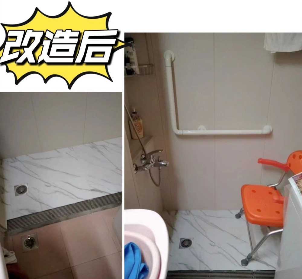 現在盛老伯家的衛生間已經變成了淋浴間模式,還配備了符合老人身高習慣的扶手和座椅,真是既便利又安心。
