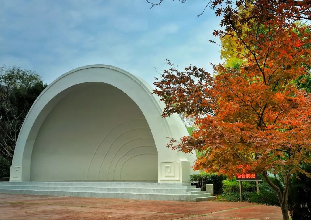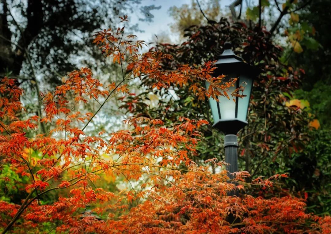 在楓葉的裝點下,百年園林里的四角亭、六角亭、山地竹亭等中式亭子進入了一年中最美的時節,只是看一眼,便已難忘。