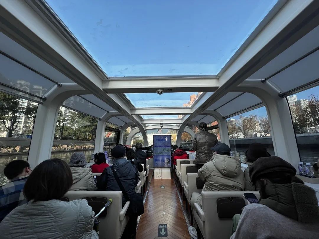 歷時近一年的準備,9月17日在上海旅游節開幕亮相的蘇州河游船,經過約3個月的調試,12月15日起對市民開放,它的試運行帶給了市民觀賞上海母親河——蘇州河的全新視角,蘇州河賞景人也變成了蘇州河“風景線”。