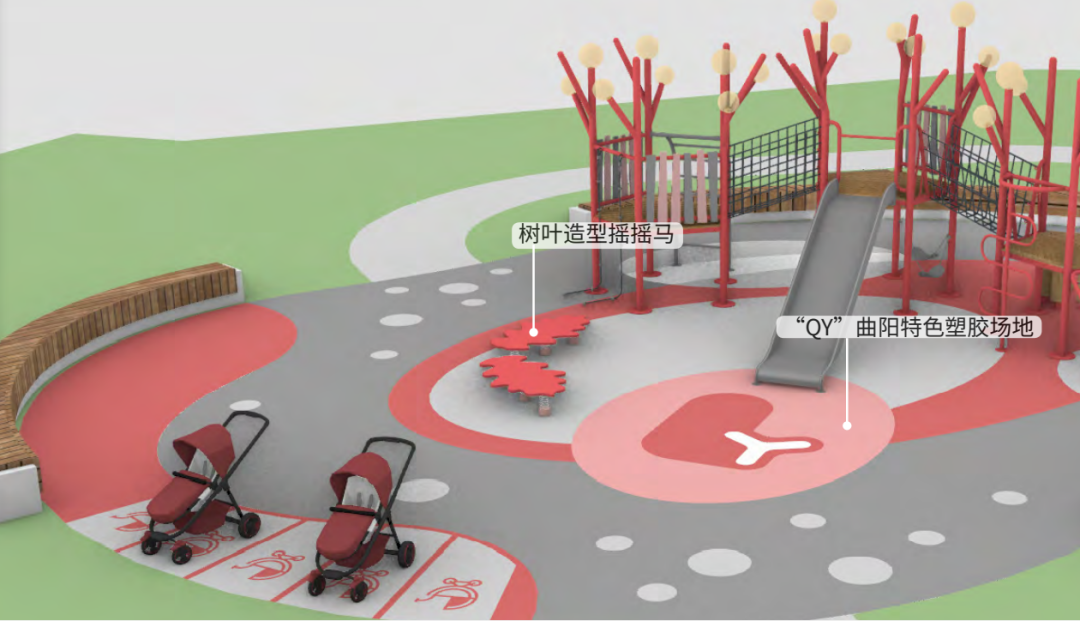 由樹葉造型搖搖馬、“QY”曲陽特色塑膠場地、叢林木屋系列游樂設備、發光燈球等組成,孩子在這里可以玩一玩,拍照也是一級好看der~